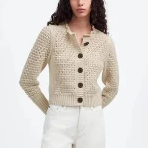 Madewell Scalloped Merino Wool-Blend Cardigan Size M