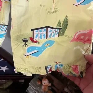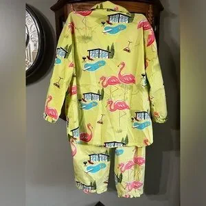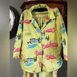 Vintage Nick & Nora Retro Outdoor Swimming Pool Flamingo Grass Mower Pajamas