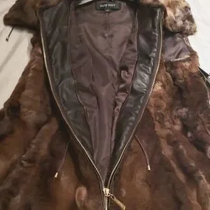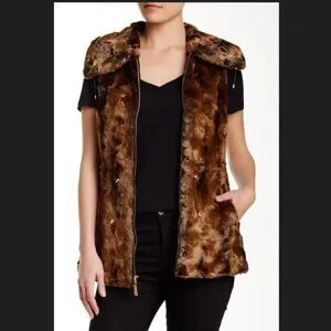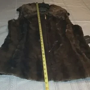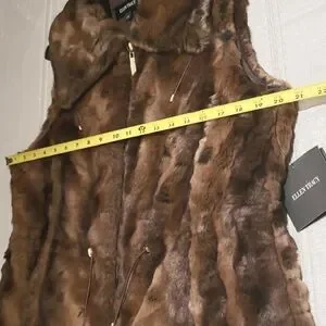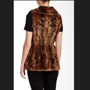 Ellen Tracy NEW VEST Crushed Faux Fur Women's L Drawstring Waist BROWN BLACK NWT