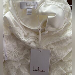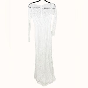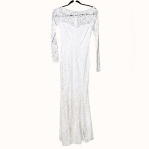 New to Poshmark? Use my referral code https://posh.mk/4c3xl2snz0b for $15 off site wide! • New with tags. • Lulus Farida White Lace Long Sleeve Maxi Dress. • Size XXS. • Bateau neckline with scalloped lace edge. • Long sleeves with sheer floral lace. • Sweetheart bodice with darting. • Mermaid silhouette with seamed skirt. • Hidden back zipper with clasp closure. • Lined body with sheer decolletage and back yoke. • Shell: 90% Nylon, 10% Spandex. • Lining: 100% Polyester. Approximate Measurements laid flat and unstretched: • Pit to pit: 13.5” • Waist: 11.5” • Length: 57.5” • Shoulder to shoulder: 16” • Sleeve length: 25” Style Tags: Victorian, lace, formal, maxi, long sleeve, white, mermaid, evening, gala, romantic, bridal, classic
