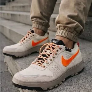 Brand new Nike trail sneakers featuring durable Cordura construction and rugged traction for everyday adventure. These sneakers combine performance design with modern streetwear style, highlighted by the bold orange swoosh and textured suede overlays.