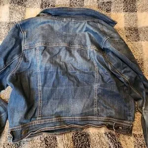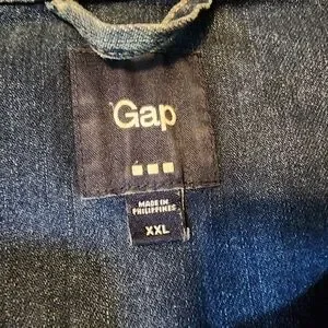 Classic button-front Jean jacket by GAP. Features chest flap pockets and seam detailing. Slight worn texture for a lived-in look. Ready to layer over tees and dresses.