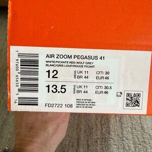 Nike Air Zoom Pegasus 41 Men's Size 12 White/Picante Red-Wolf Grey FD2722 108