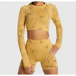 Gymshark ADAPT CAMO SEAMLESS LONG SLEEVE CROP TOP Sz Small NEW