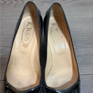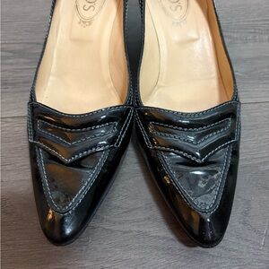 Tod's Fifty Century Black Patent Leather Kitten Heel Shoes Quiet Luxury Classic