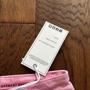 Stylish pink jean shorts with frayed hems. Ideal for casual wear.