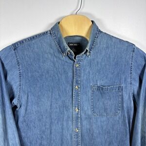 Vintage Cherokee Brand Mens Denim Button Down Shirt Medium Wash Blue Cotton