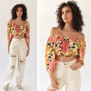 NEVER WORN. Brighten your wardrobe with this vibrant floral top. Featuring a multicolor design, it's perfect for any occasion.