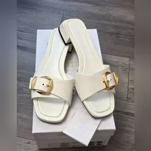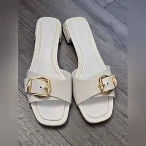 Jimmy Choo Hawke Mule Flat Latte/Gold Ladies Size 38.5 EUC Luxury Leather