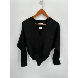 GOOD AMERICAN NWT Utility Surplice Bodysuit in Black // Medium