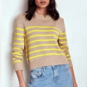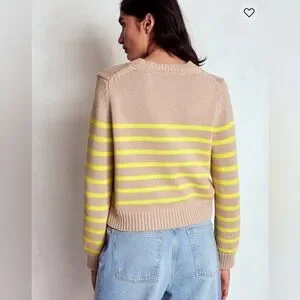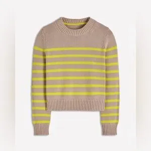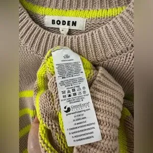 Boden Lucy chunky cotton sweater size medium camel brown neon yellow stripes
