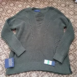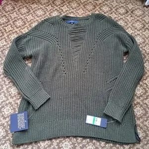 RACHEL Rachel Roy Olive V-Neck Ribbed Knit Sweater