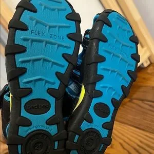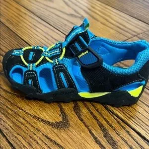 Pediped Kids Sandals in Black and Blue with Yellow Accents