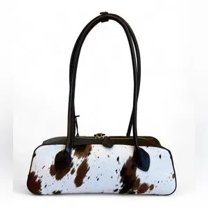 The NWT House of Harlow 1960 brown cow print shoulder bag is a stylish and unique accessory for women. Made with genuine calf hair, this exterior material gives the bag a luxurious and trendy look. The brown color and cow print design make it a statement piece, perfect for adding a touch of bohemian flair to any outfit. The House of Harlow brand ensures high quality and attention to detail, making this bag a must-have for fashion-forward women looking to make a statement. #cowprint #viral