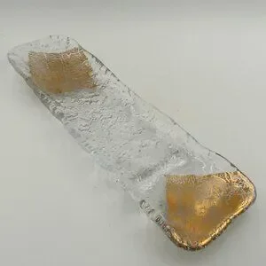 Handmade Unique Texture 16" Gold Leaf Rectangular Glass Platter Made in Japan