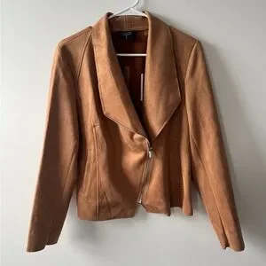 T Tahari Camel Suede Asymmetrical Zip Jacket