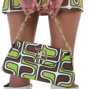 Dyspnea Artpop Bag Green Brown Retro Geometric Gold Chain Shoulder Bag NIB