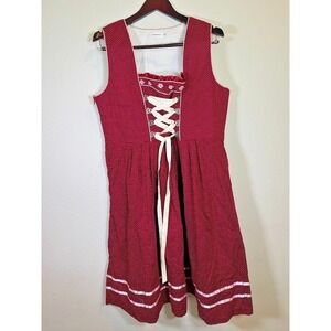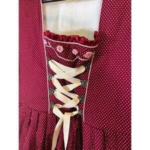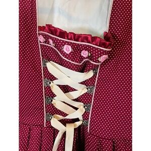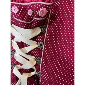 Dirndl Dress XXL Burgundy Polka Dot Oktoberfest Lace Up Bavarian Milkmaid