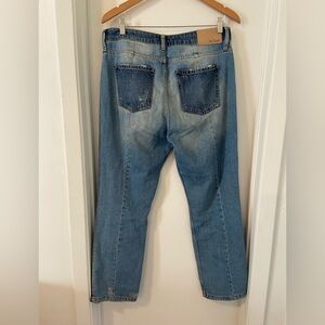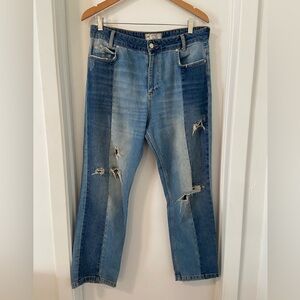 Free People patchwork distressed loose straight leg denim size 30 boho grunge