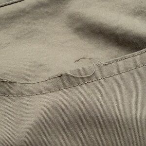 Marks on front right pocket, mark on back right pocket, loose thread on both front pockets - all noted in photos