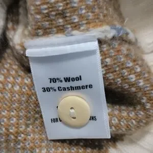 It has a 70 percent wool 30 percent cashmere label 2nd photo. Thanks