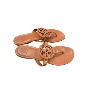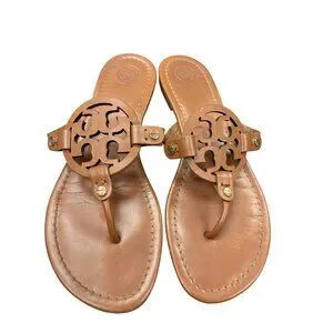 Elevate your style with the Tory Burch Miller thong sandals, crafted from premium brown leather. Perfect for casual outings or beach days, these sandals offer comfort and elegance. Minor wear on one insole pointed in pics with no other defects noted. I ship fast. SKU 9925