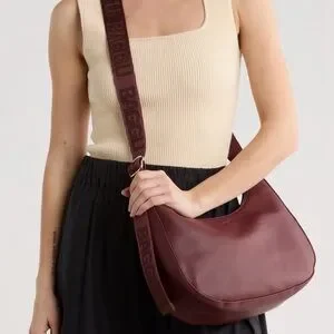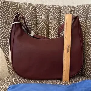 BAGGU Medium Recycled Leather Crescent Shoulder Bag Mahogany Burgundy NWT