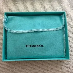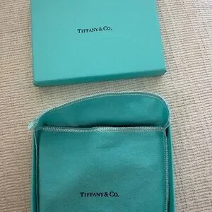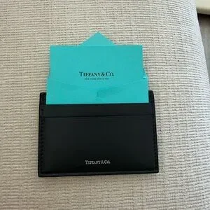 Sleek black card holder with signature Tiffany teal accents. Ideal for stylish organization. Brand New.