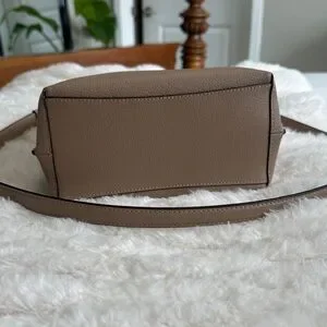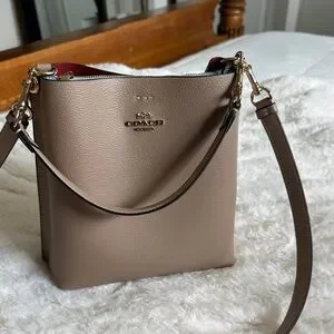 Coach Taupe Leather Crossbody Bucket Bag with Red Interior