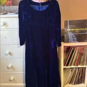 Vintage 70’s Milkmaid Velvet Goth Blue Peasant Gunne Sax 80’s Maxi Dress Gown M
