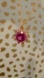 Chic necklace with a vibrant pink gem. Gold chain adds elegance. Ideal for any occasion.