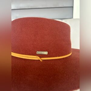 GIGI PIP Burnt Orange Wren Wide-Brim Fedora with Tan Trim