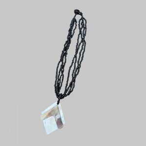 3/$18 Abalone Shell Iridescent Geometric Pendant and Black Beaded Necklace
