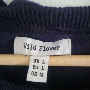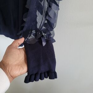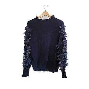 WILDFLOWERS Sweater With Sheer Petal Applique Sleeves Ruffle Trim Size L