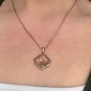 Upgrade your everyday accessory with the Kendra Scott Arlet Rose Gold Pendant Necklace in Gold Dusted Glass. Featuring a trend-forward kite shape, adjustable slider, and arrowhead and tassel charms, this is a pendant necklace sure to turn heads with its unique style. Great condition, comes with dust bag.
