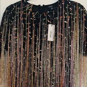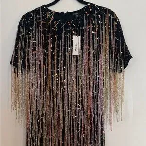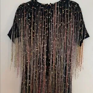 Nasty Gal Black Mini Dress with Gold & Pink Sequin Fringe