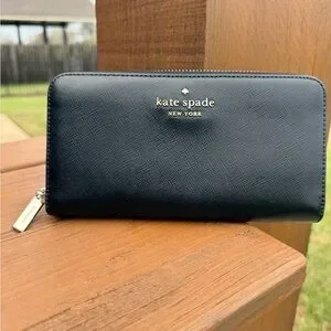 GUC Kate Spade Black Leather Textured Long Wallet