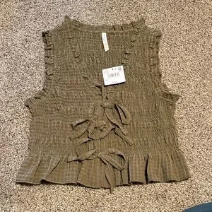 American Eagle Outfitters Olive Green Smocked Tie-Front Camisole
