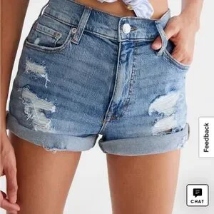 Aeropostale Mom shorts, size 6. Features a classic blue color. Made of cotton, recycled cotton and spandex for a little give! Super soft!