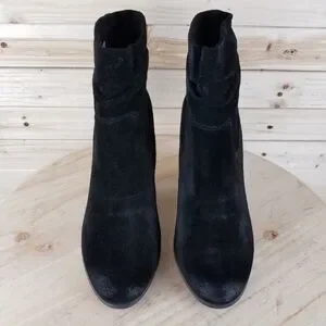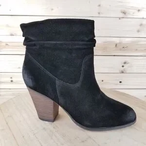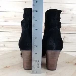 Distressed Western Biker 9 US Black Suede/Leather Slouch Heeled Bootie Boots NEW
