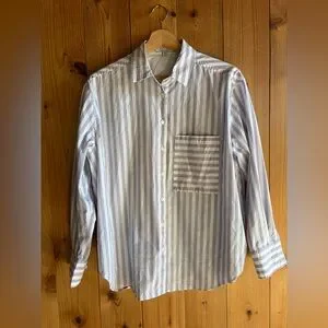 AYR The Deep End Button Down Shirt in Lilac Stripe Size Medium