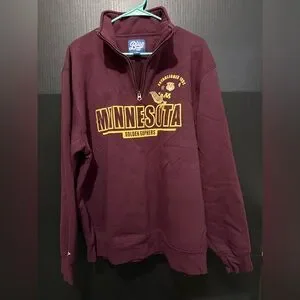 Show school spirit with this maroon Minnesota Golden Gophers quarter-zip sweatshirt. Soft, warm fabric with bold gold team graphics on the chest. Comfortable fit for everyday wear and game days