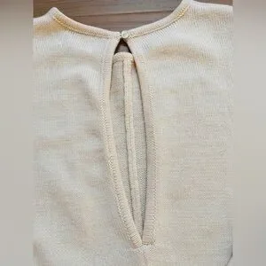 Lightweight knit construction with a back button closure and subtle keyhole detail. The relaxed silhouette and soft acrylic knit make this an easy, comfortable statement piece.