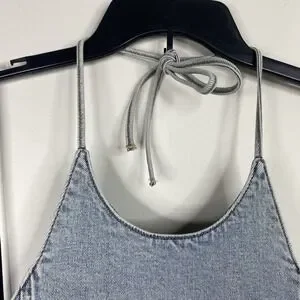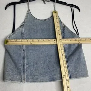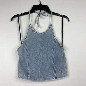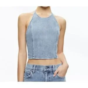 Alice + Olivia Jeans Jaymee Tie Neck Cropped Denim Halter Top Women's Sz 6