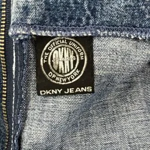 Vintage DKNY Jeans denim shift dress in a medium wash features a sleeveless silhouette with a classic scoop neckline. This 100% cotton piece is designed with a functional chest pocket detailed with a branded logo tab and unique side-entry hip pockets. The back is finished with a full-length exposed zipper closure and a horizontal seam detail for a structured look.