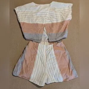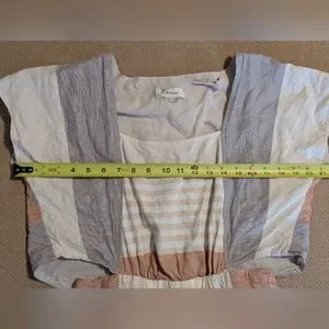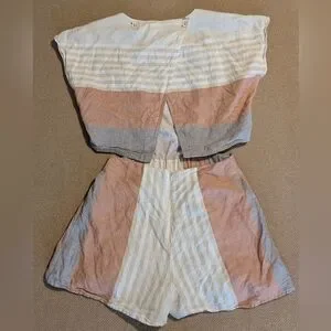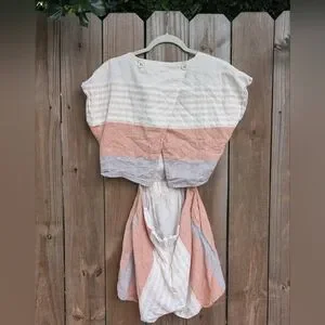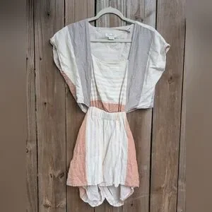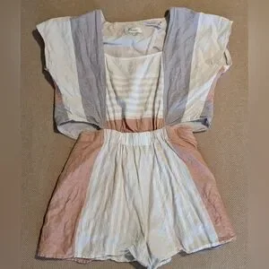 Anthropologie Elevenses Neutral Striped Square Neckline Cut Out Romper