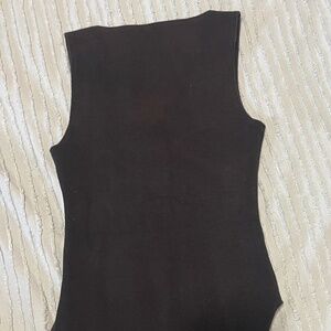 Sleek black bodysuit. Sleeveless design. Perfect for layering.