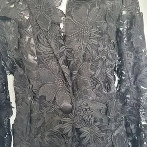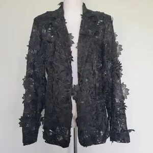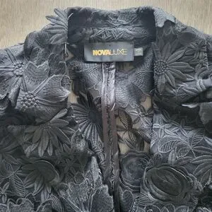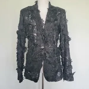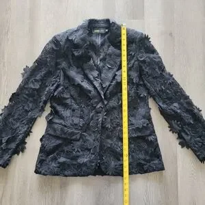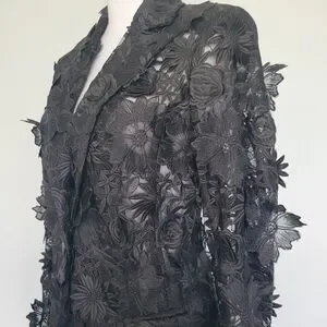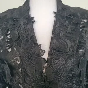 NWOT Black Floral Lace 3-D Applique Embroidery 1 Button Textured Blazer Sz XL
