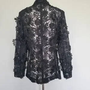 Features and keywords: One button, floral, lace, plus size, 3D floral, applique, career, office, professional, goth, whimsigoth