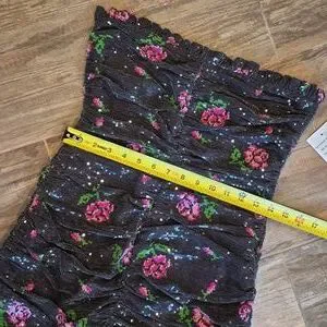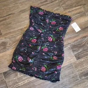 Almost too Beautiful for Words NWT For Love & Lemons Every Rose Sequin Strapless Lined Dark Gray/Light Black Mini Dress, Size Small (TTS)